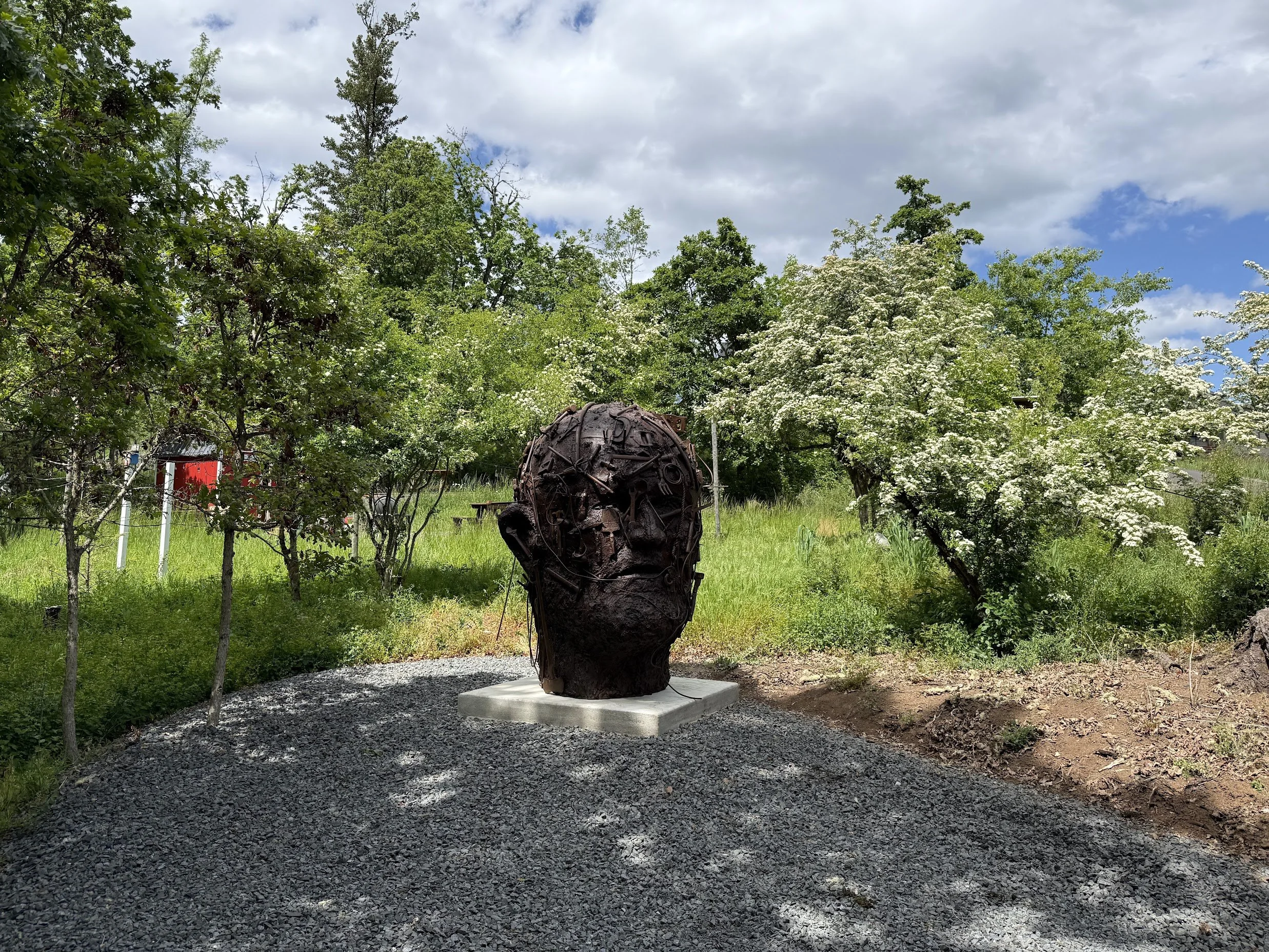 A year later, the piece was cast by Blue Mountain Fine Art in Baker City and installed here at Chaos Vineyard in May 2025.